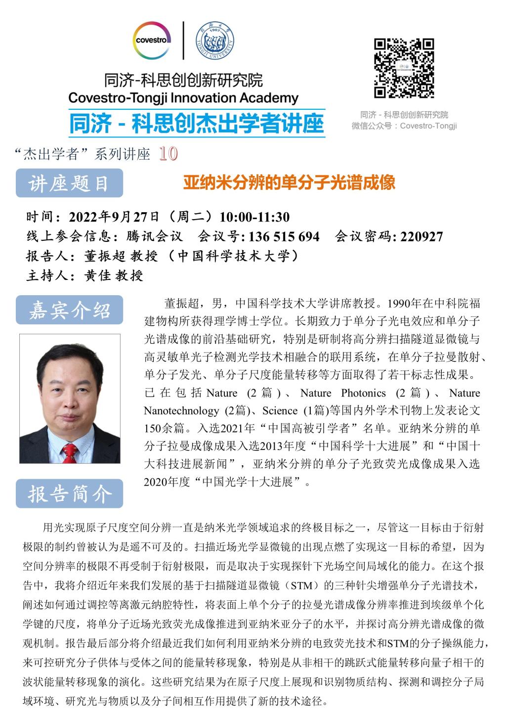 上一条:同济-科思创杰出学者讲座:基于精确结构的金属团簇组装材料
