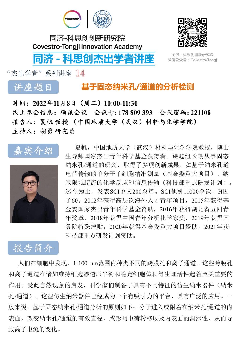 下一条:同济-科思创杰出学者讲座:表界面化学反应的原位成像研究