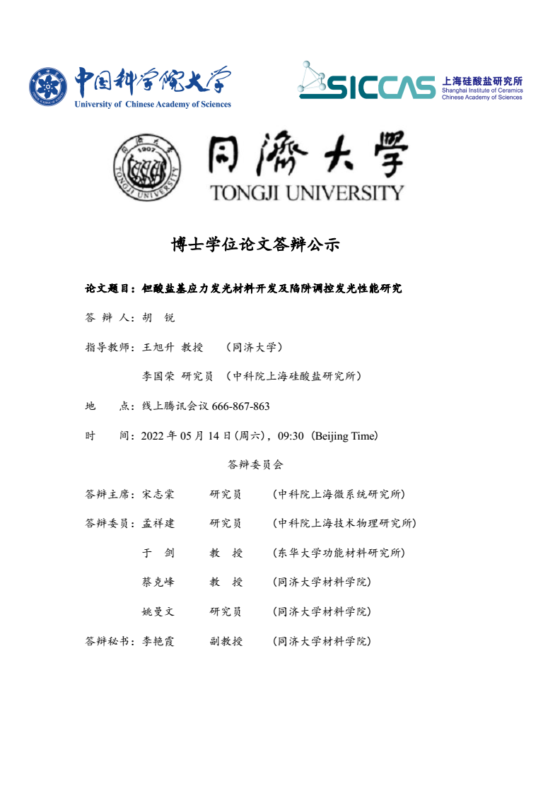胡锐(博士)学位论文答辩公示