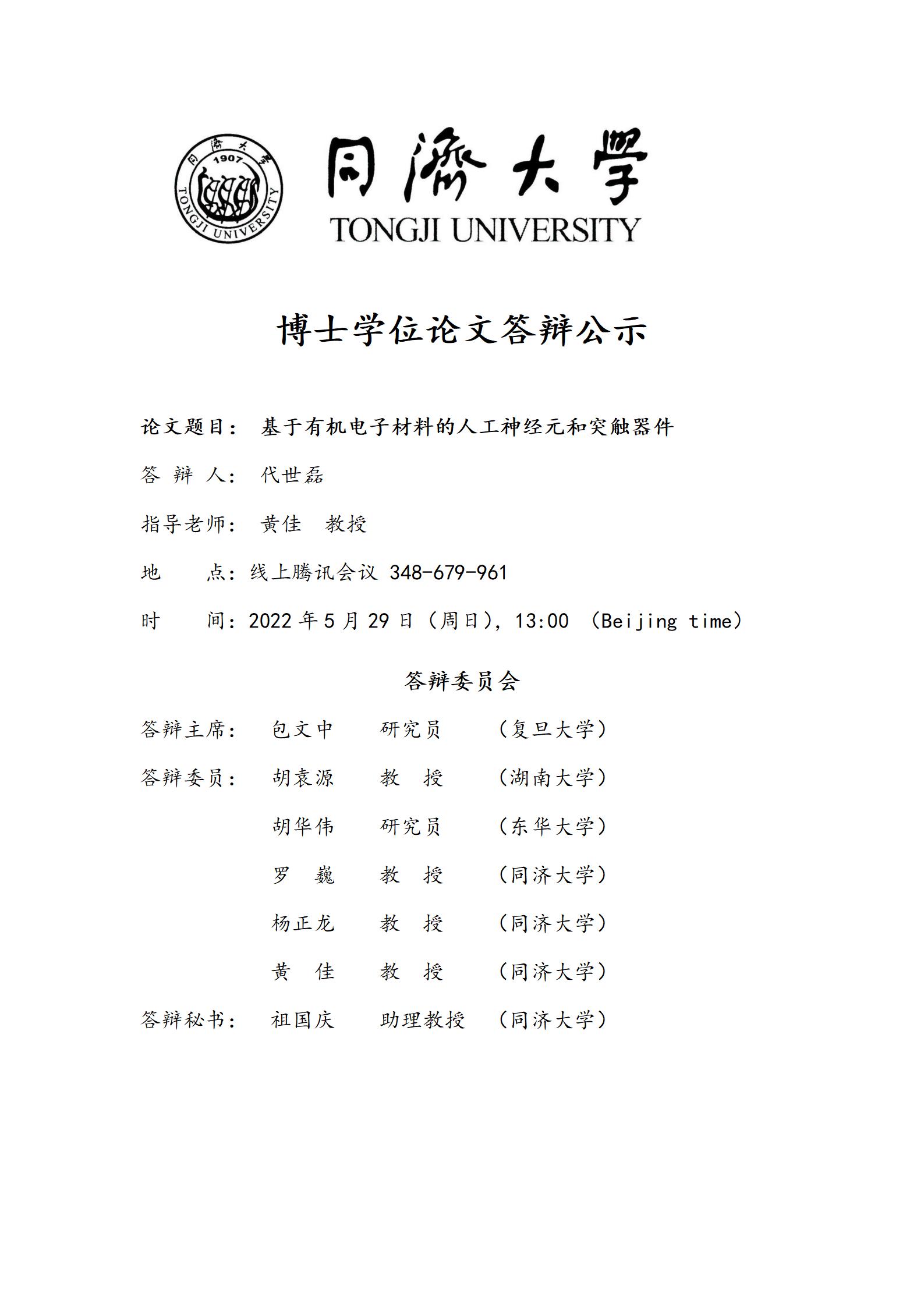 代世磊(博士)学位论文答辩公示